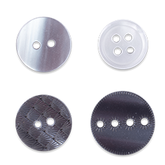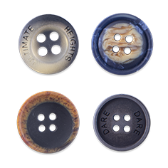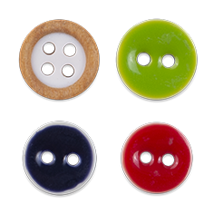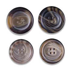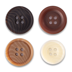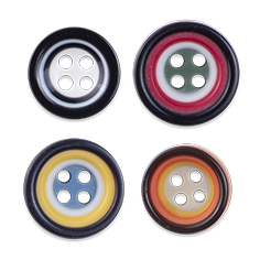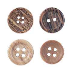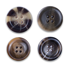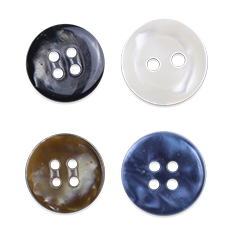 Polyester buttons are the most widely used all over the world in the manufacture of industrially made clothing and they provide the perfect answer to different aesthetic and quality application needs. These buttons are made from a liquid unsaturated polyester resin, mixed with other chemicals to be transformed into sheets or rods. It can also be used to mimic other kind of buttons like wood, coconut, corozo, Pearl, Shell etc.